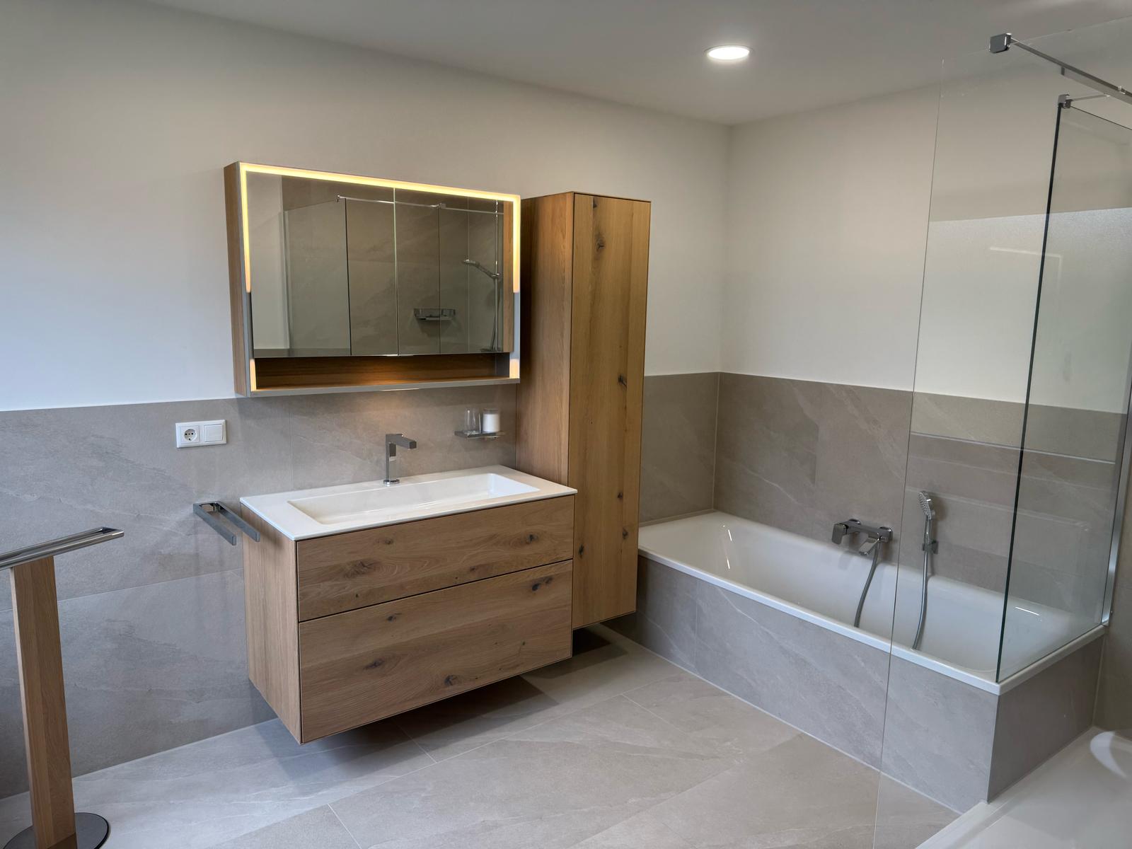 Von der ersten Planung bis zur finalen Umsetzung begleiten wir Sie bei Ihrer Badsanierung mit Fachkompetenz und Sorgfalt. Ob Sanitärinstallationen, Fliesenverlegung, Elektroarbeiten oder Maler- und Verputzarbeiten – bei uns erhalten Sie alle Leistungen aus einer Hand. Mit hochwertigen Materialien, präziser Handwerkskunst und einem Auge fürs Detail schaffen wir ein Bad, das Ihren Wünschen perfekt entspricht.